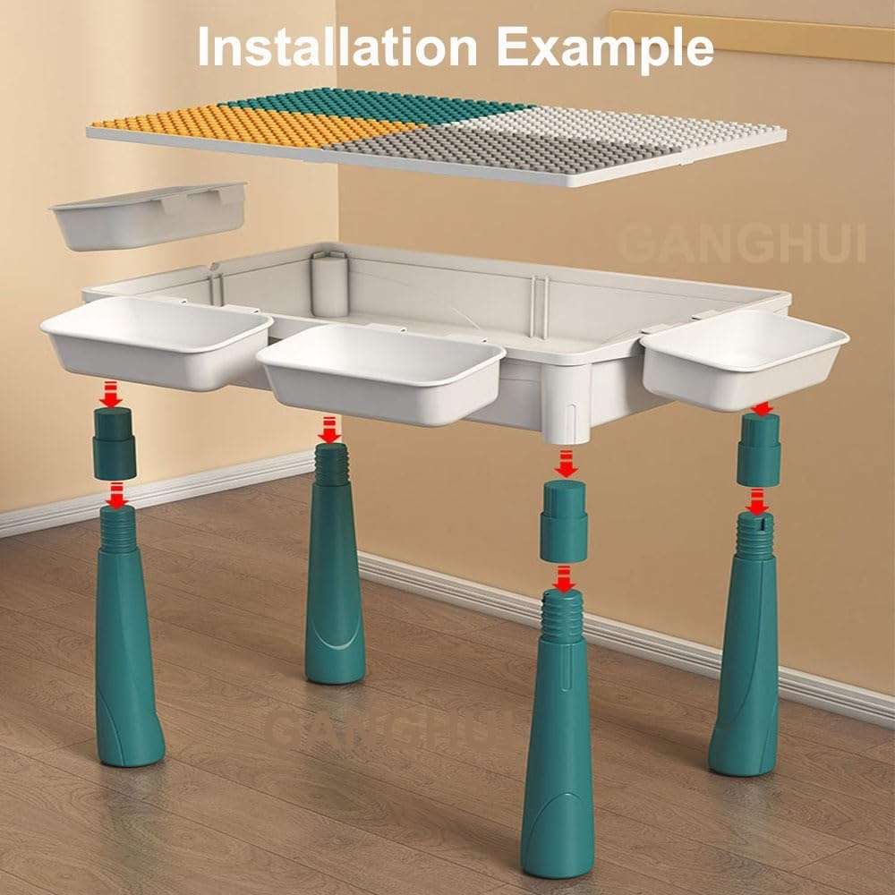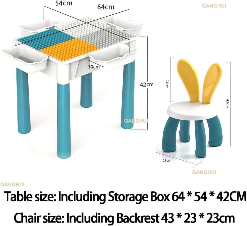 Kids building blocks table included compatible activity table, removable cover, 2 chairs, 4 storage boxes and 4 height table risers.