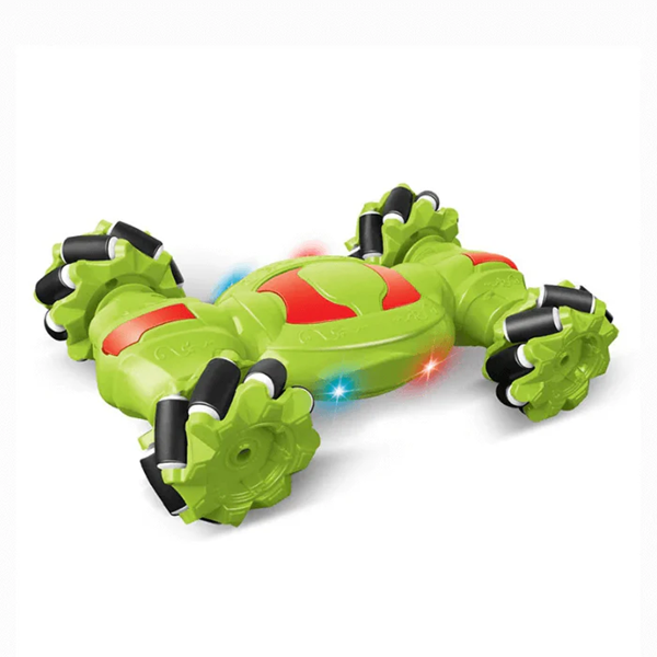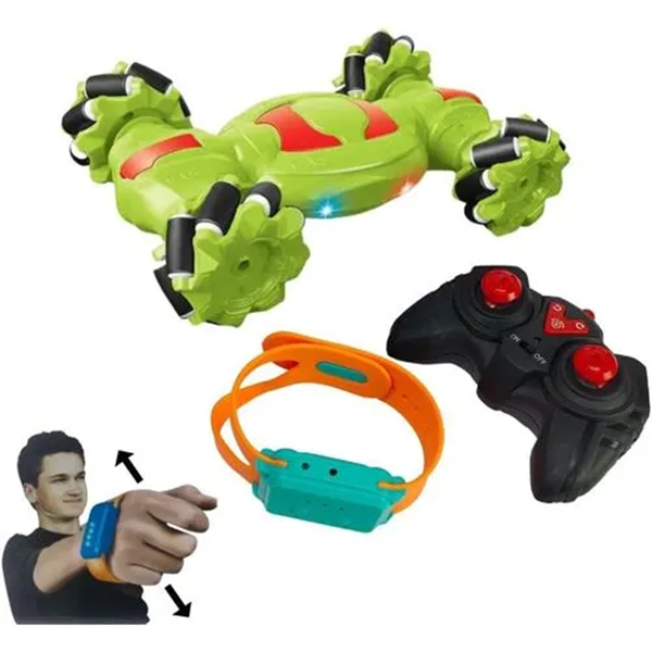 This is a remote-controlled (RC) stunt car that features 360-degree rotations, double-sided driving, and a unique deformation ability with just one click of the controller. It is a 4WD (four-wheel drive) off-road vehicle designed for high speed and durability, made from anti-collision, high-quality materials. The toy operates on a 2.4GHz frequency for precise control and is often equipped with lights and music for an immersive experience.